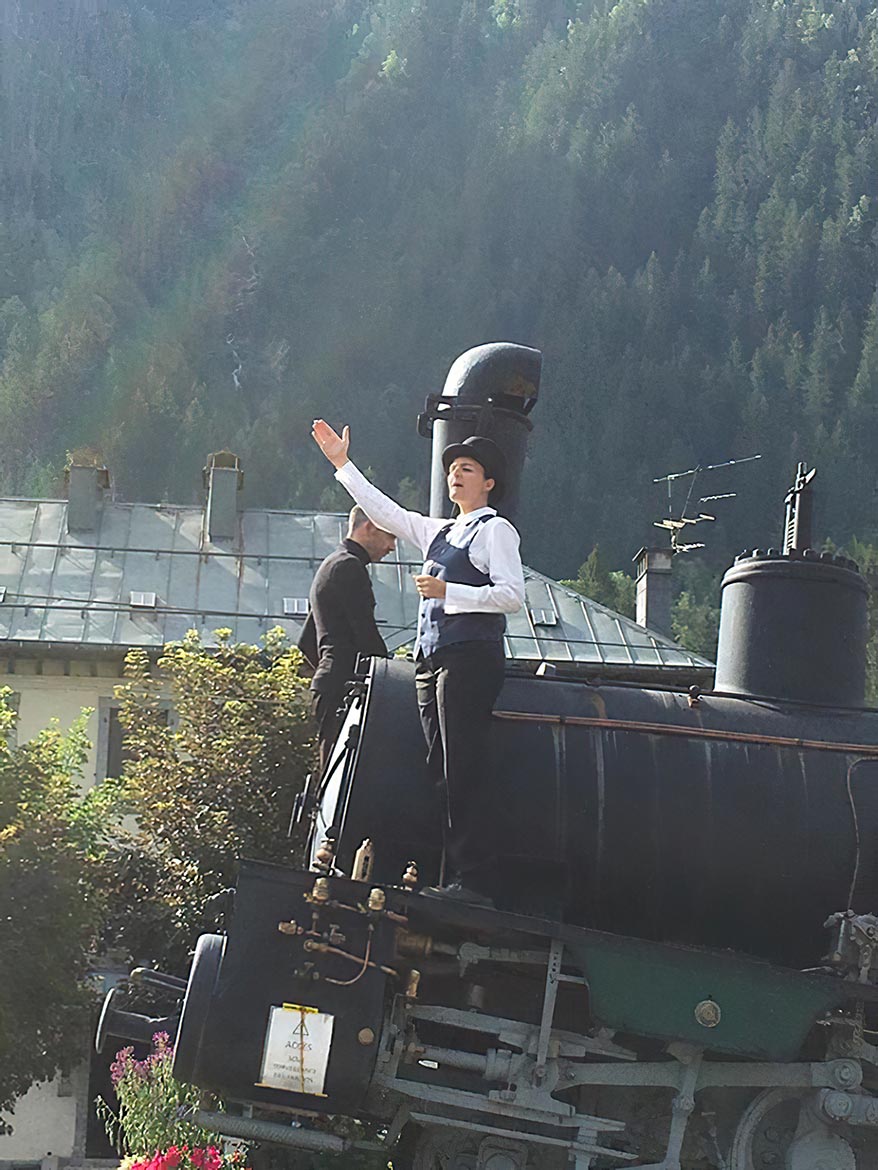 Demande du client : Proposer une animation théâtrale tout public sur l’histoire de la ligne du train du Montenvers, avec un temps d’animation dédié aux officiels.