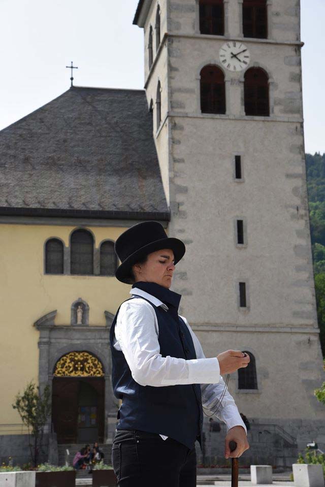 Réalisation : Visite théâtralisée de Sallanches d’une heure et une déambulation à travers les endroits couverts, isolés et historiques de la ville.